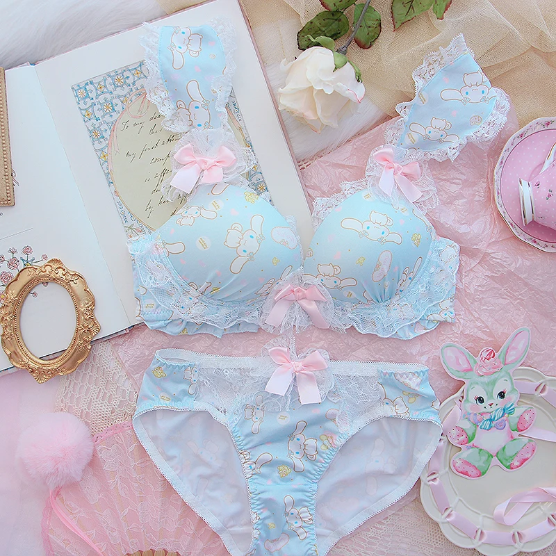 Soft Girl Sweet lovely Lolita Underwear Set Japanese Kawaii Dog Lace Intimates Set Sexy Bow Ruffles Bra & Panties Set