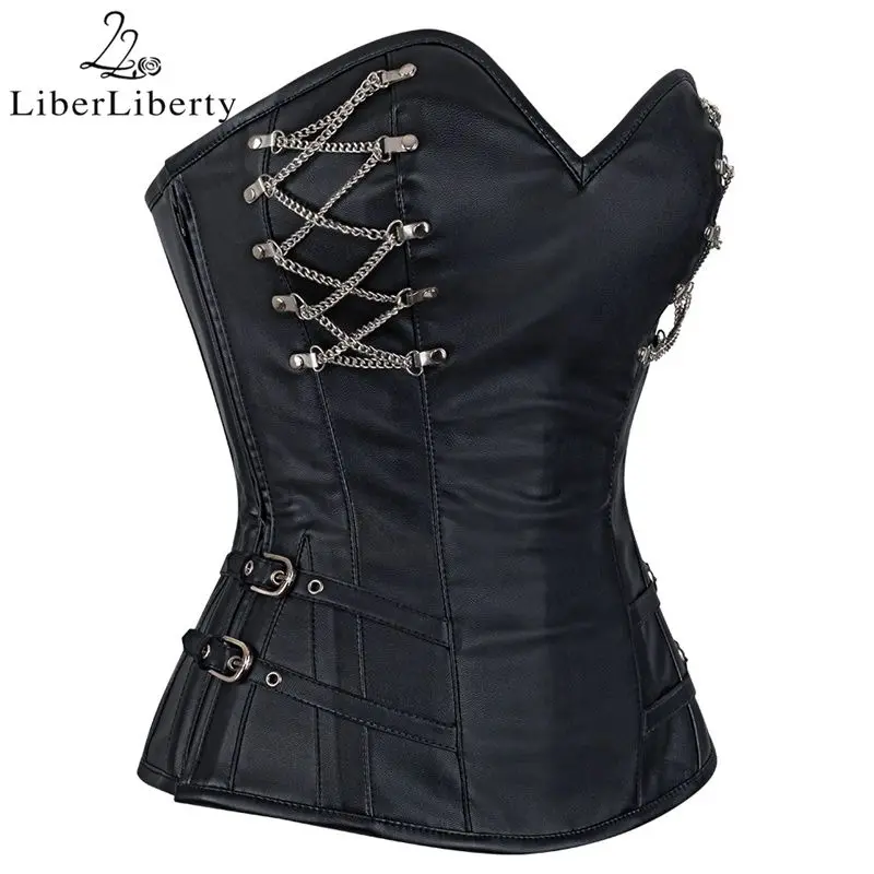 Faux Leather Slim Waist Zipper Overbust Steampunk Sexy Corset and Bustiers PU Leather Corselet Espartilhos party Gothic clothing