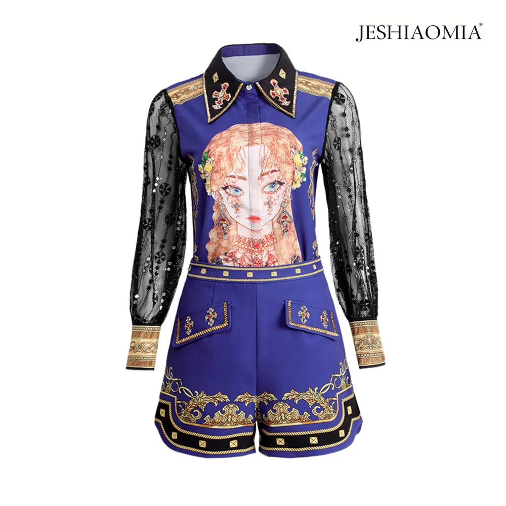 Addition Information of 2021 SPRING BEADED COLLAR LACE PATCHWORK TOP & SHORTS SET