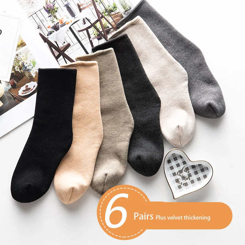 Buy Winter Cashmere Socks New Plus Velvet Thick Warm Cold Fluff Floor In Tube Snow Socks Skin-Friendly Wear Soft Cotton Six Pairs and You will Save USD 6.55 or 25%, Because You Just Pay for 19.66 not Full Price for 26.21